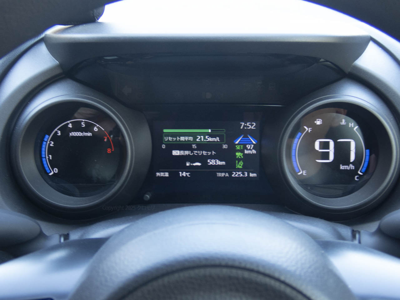 レーダーありの場合、車間距離は遠い・中間・近いの3種類に調整できる。ダッシュボードに前方車両のアイコンが表示されたら、間もなく車間距離による減速が始まる合図。