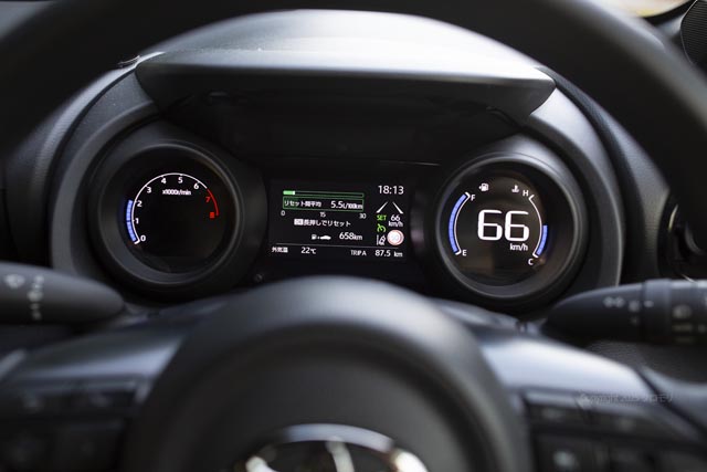 ATモデルでチェンジレバーを表示する部分は暗黒が広がっている。欧州向けのMTモデルではシフトアップインジケーターが表示されるらしい。